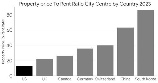为什么在高利率情况下美国房地产还值得投资? May 28 Written By Eric Bai 稳定现金流美国的房地产是可以提供很稳定的现金流的。 租售比 (房价/年租金)远低于其他国家 稳步增长的人均收入稳定的房价增长折旧等税务优惠1031 exchange 永久延迟交税 Eric Bai